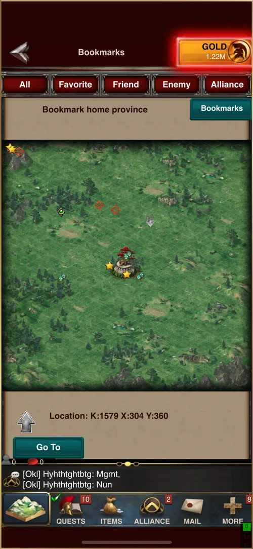 - Tap Map View to see everything—your Empire, the Wonder, Alliance Members, Bookmarked Favorites, Resources, Friends, Enemies, etc… all in one place!